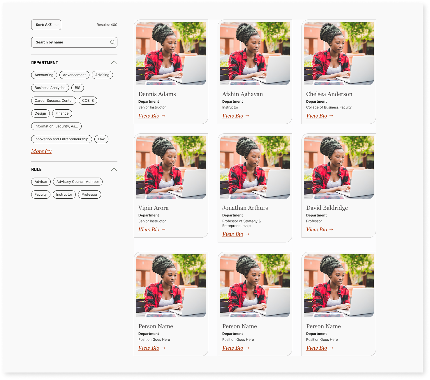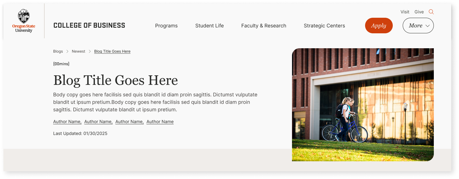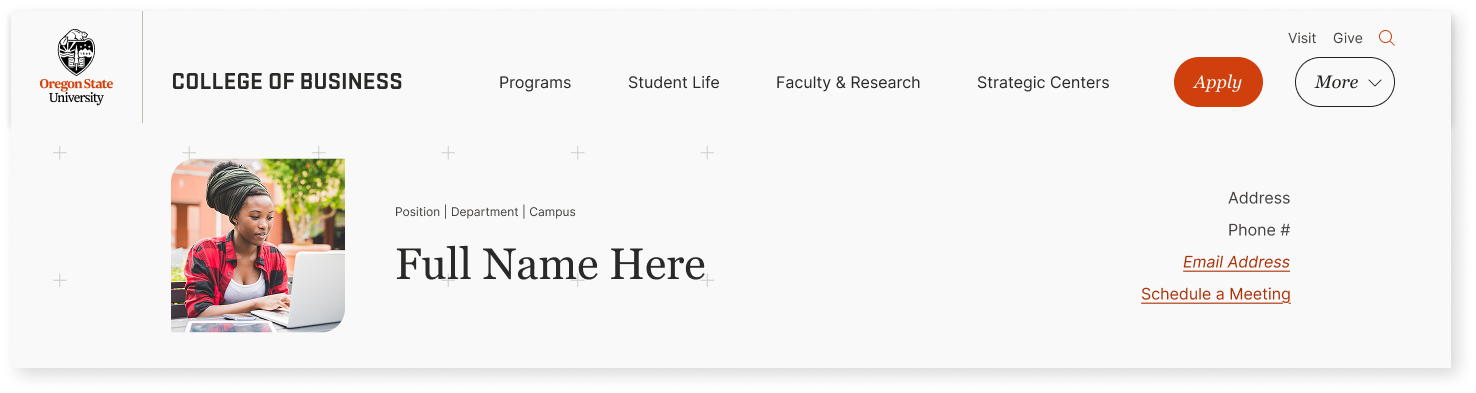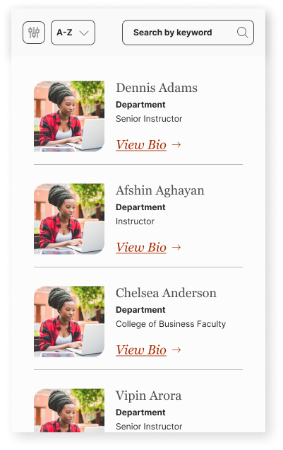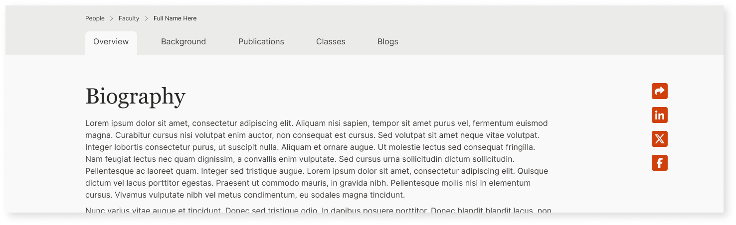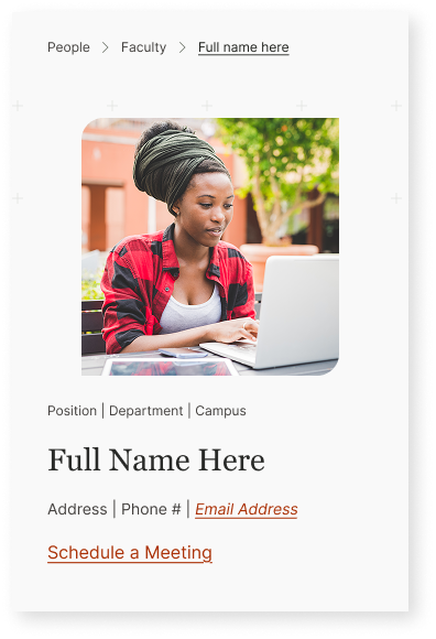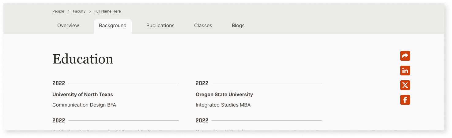 - Create nuanced visual cues to differentiate between dynamic content pages like Blogs and Faculty Profiles. Integrate those cues across interactive elements and page layouts.