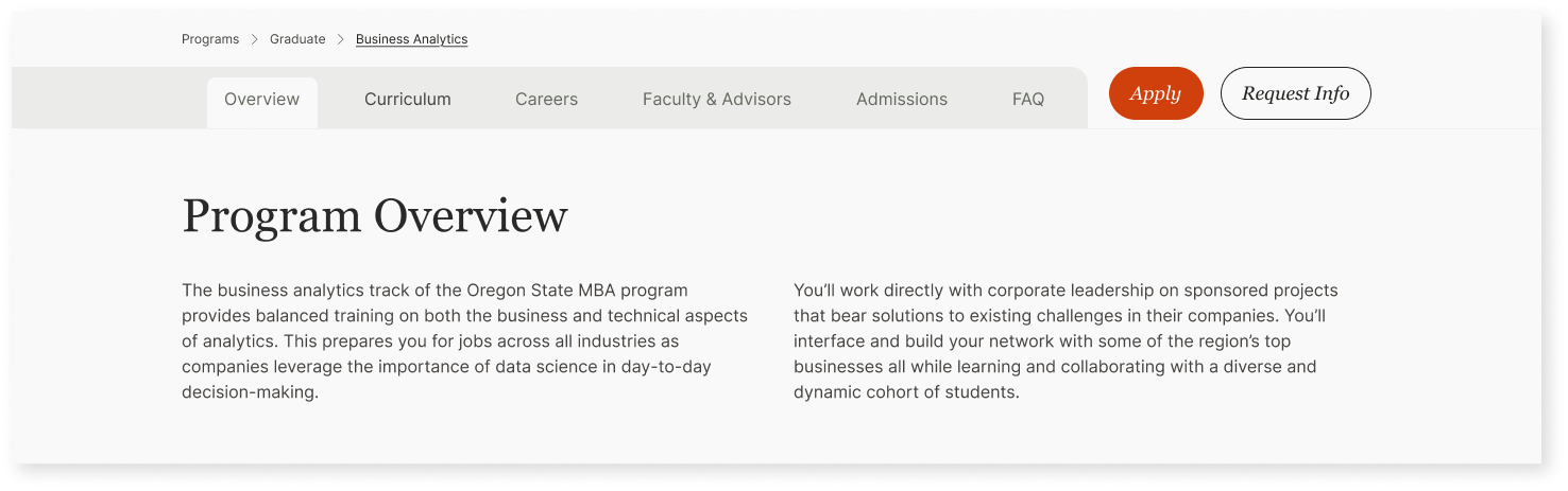 - The Program Finder was outdated, limiting exploration for students and prospects which stemmed site conversions.